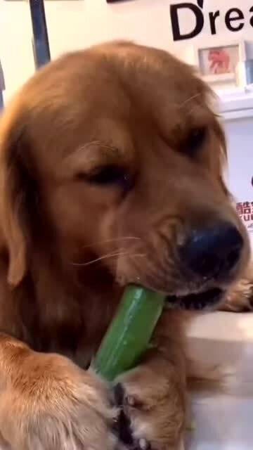 而且,我家小狗吃黄瓜还有一套独特的技巧。它总是先吃黄瓜的尾部,因为那里水分最多,口感也最好。再慢慢吃向头部。这吃瓜的姿势,简直专业得让人佩服!